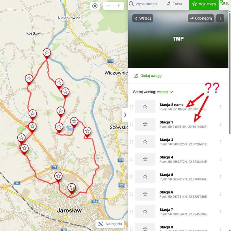 After selecting the file, I see the effect of the first stage of import (image 1). For the <wpt> points, I see the contents of the <name> and <cmt> tags (if <cmt> is empty, <desc> is shown).
